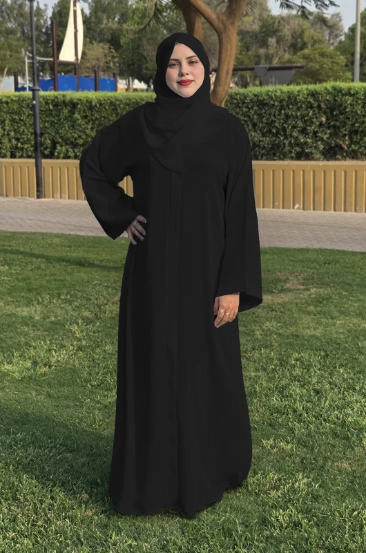 • Black Abaya made of nada fabric which is soft, elegant and luxurious.