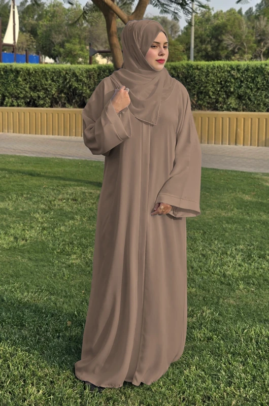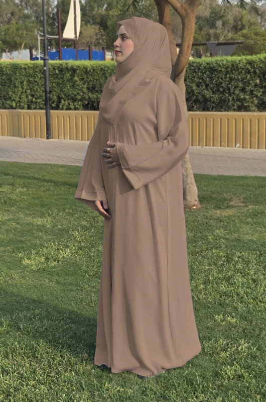 • Rosy Brown Abaya made of nada fabric which is soft, elegant and luxurious.