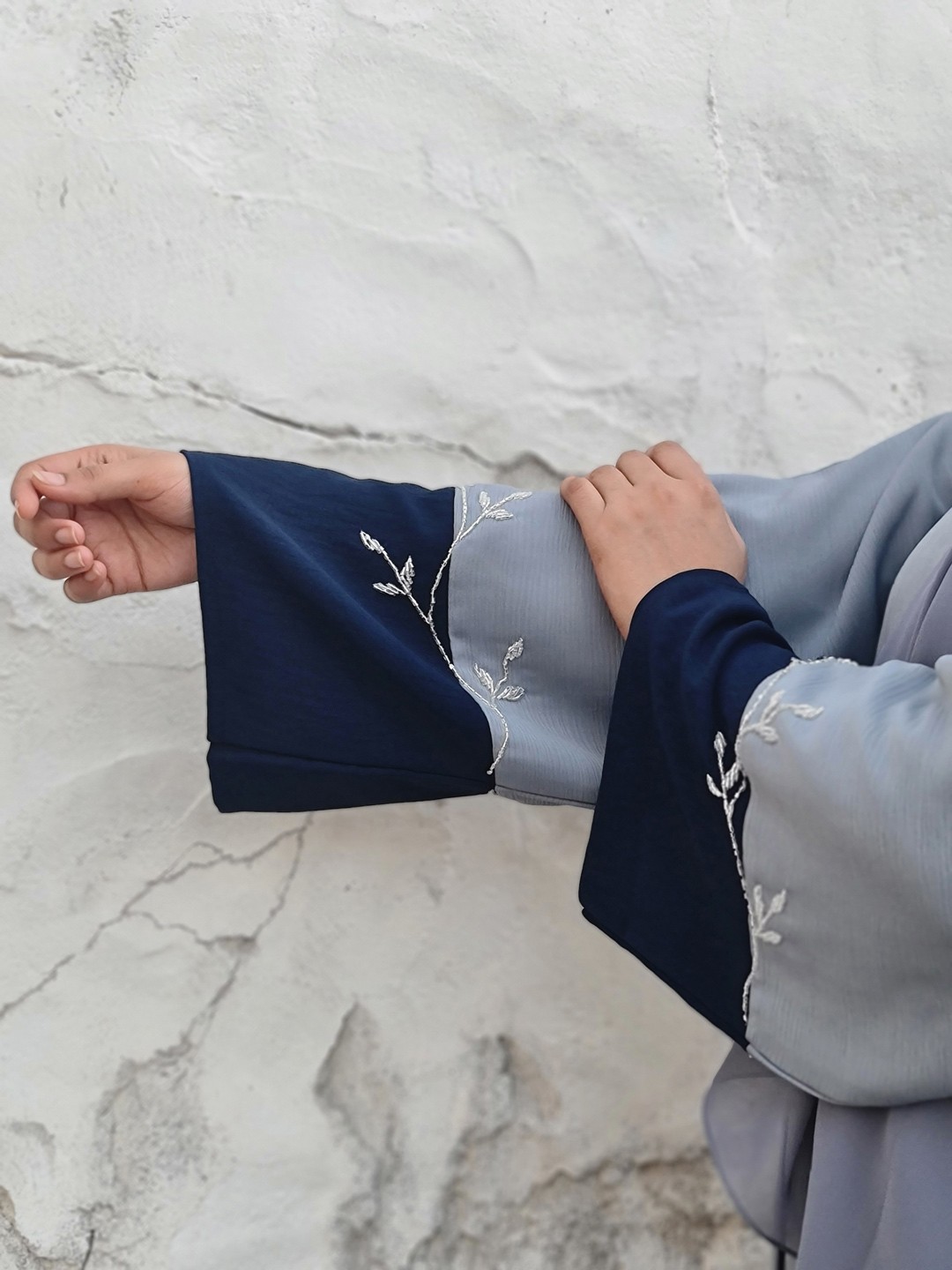 • Light Blue Abaya made of Zoom Fabric with CY fabric on Sleeve Pattern