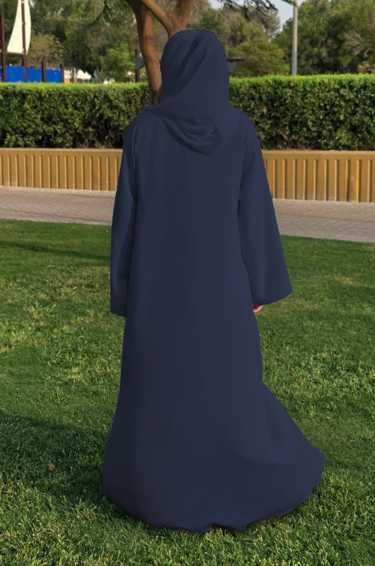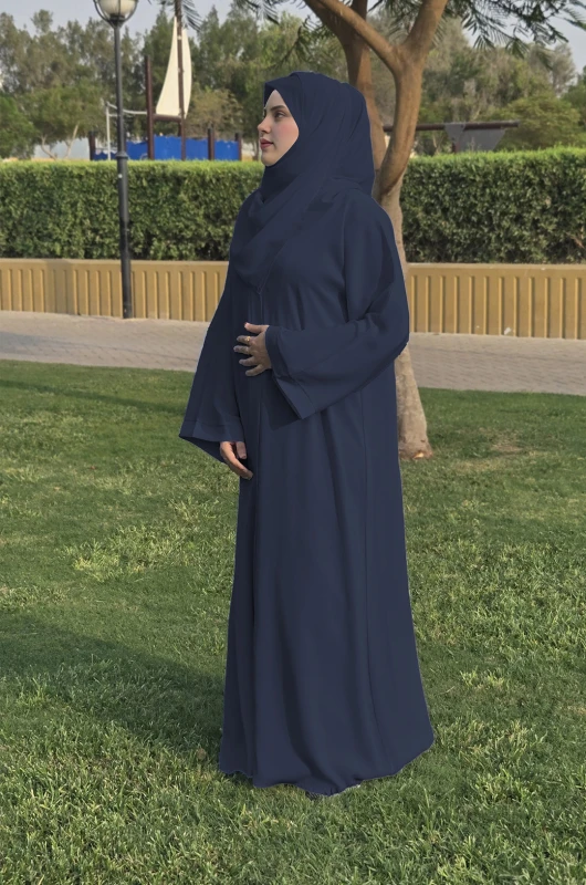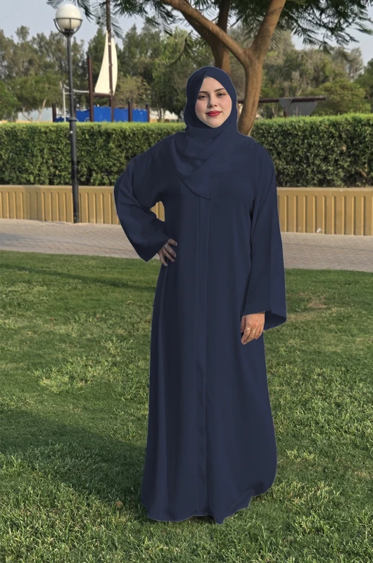 • Navy Blue abaya made of nada fabric which is soft, elegant and luxurious.